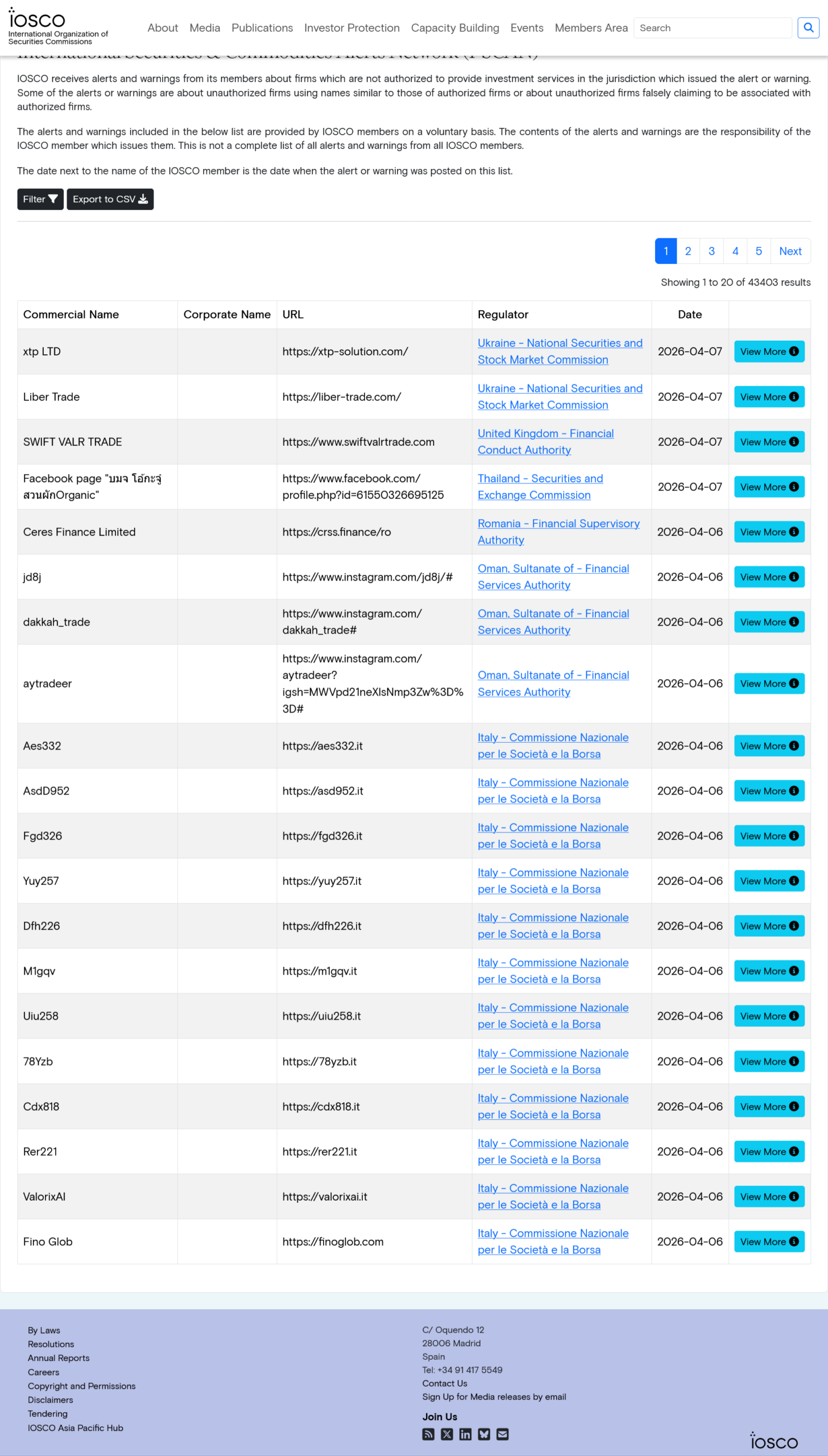 Warnmeldungen der IOSCO vor Finanzbetrügern