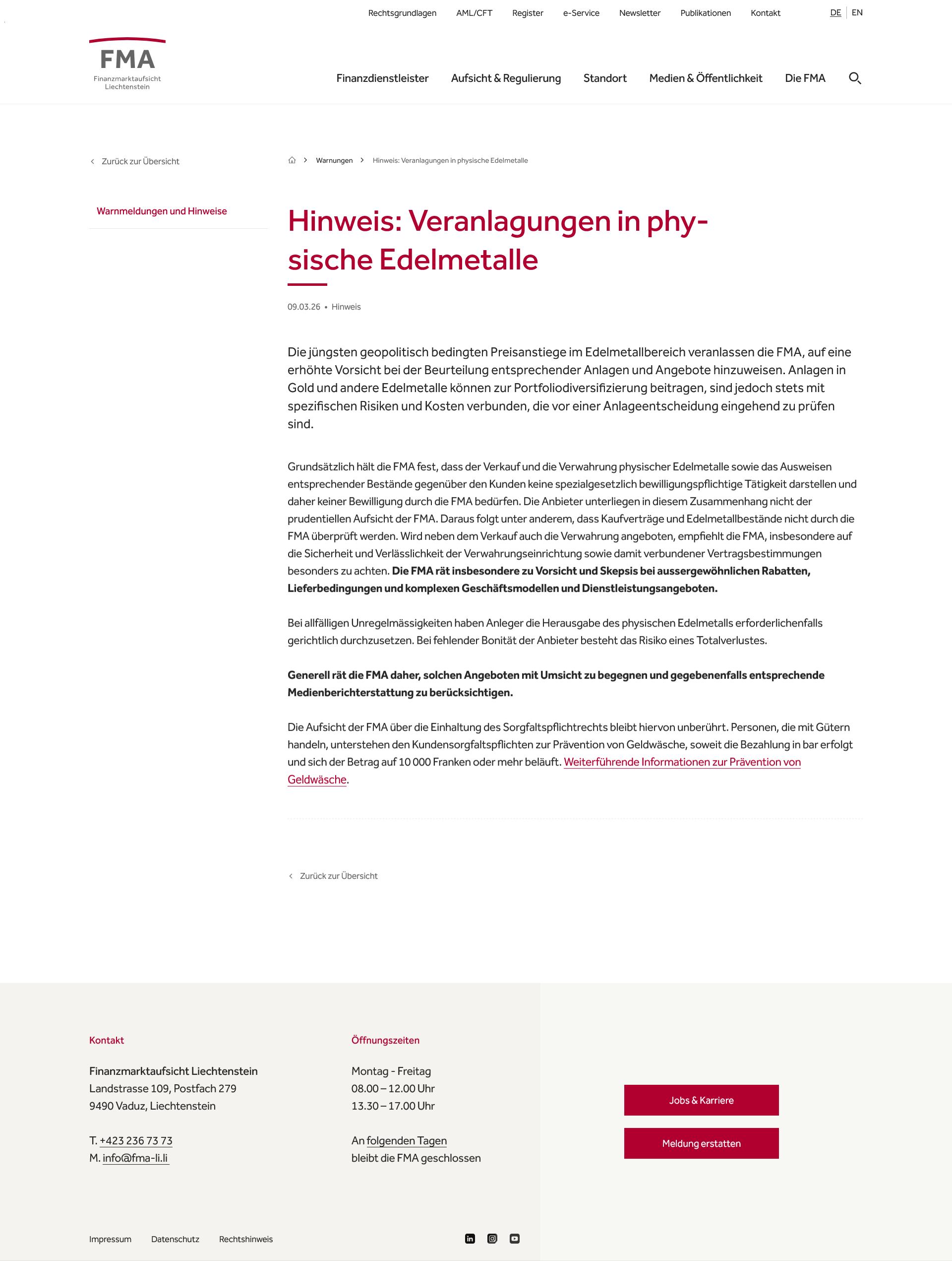 Warnung der Finanzmarktaufsicht Liechtenstein